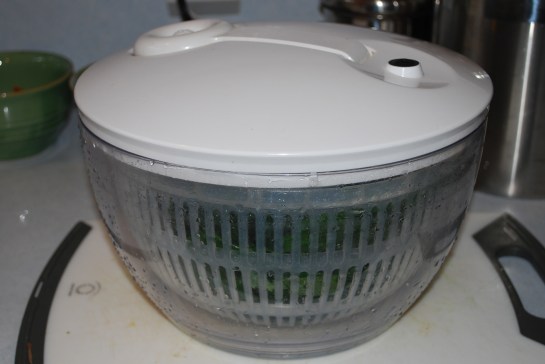 I used Black/Lacinato Kale for this salad. I rip the leaves off of the thick ribs/stems and wash them in one of my favorite kitchen tools – The Pampered Chef Salad Spinner . I use this almost daily and I love it! It’s $60 but it’s totally worth it, especially if you use it as much as I do.
