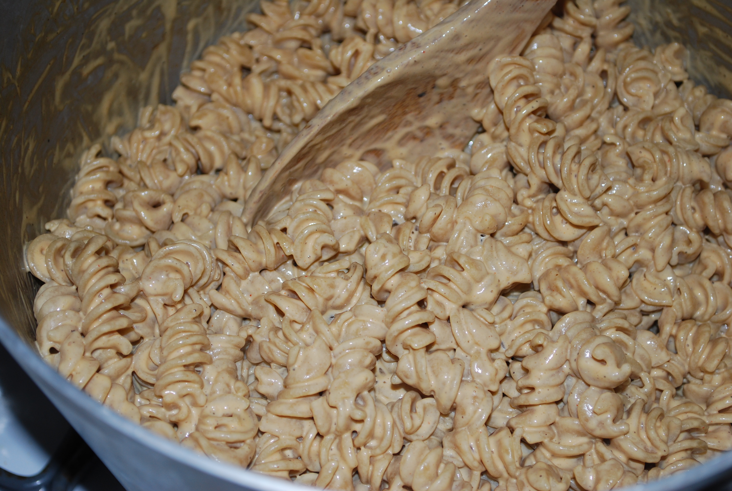 • Drain the noodles, return to the pot and pour the sauce over until well heated.