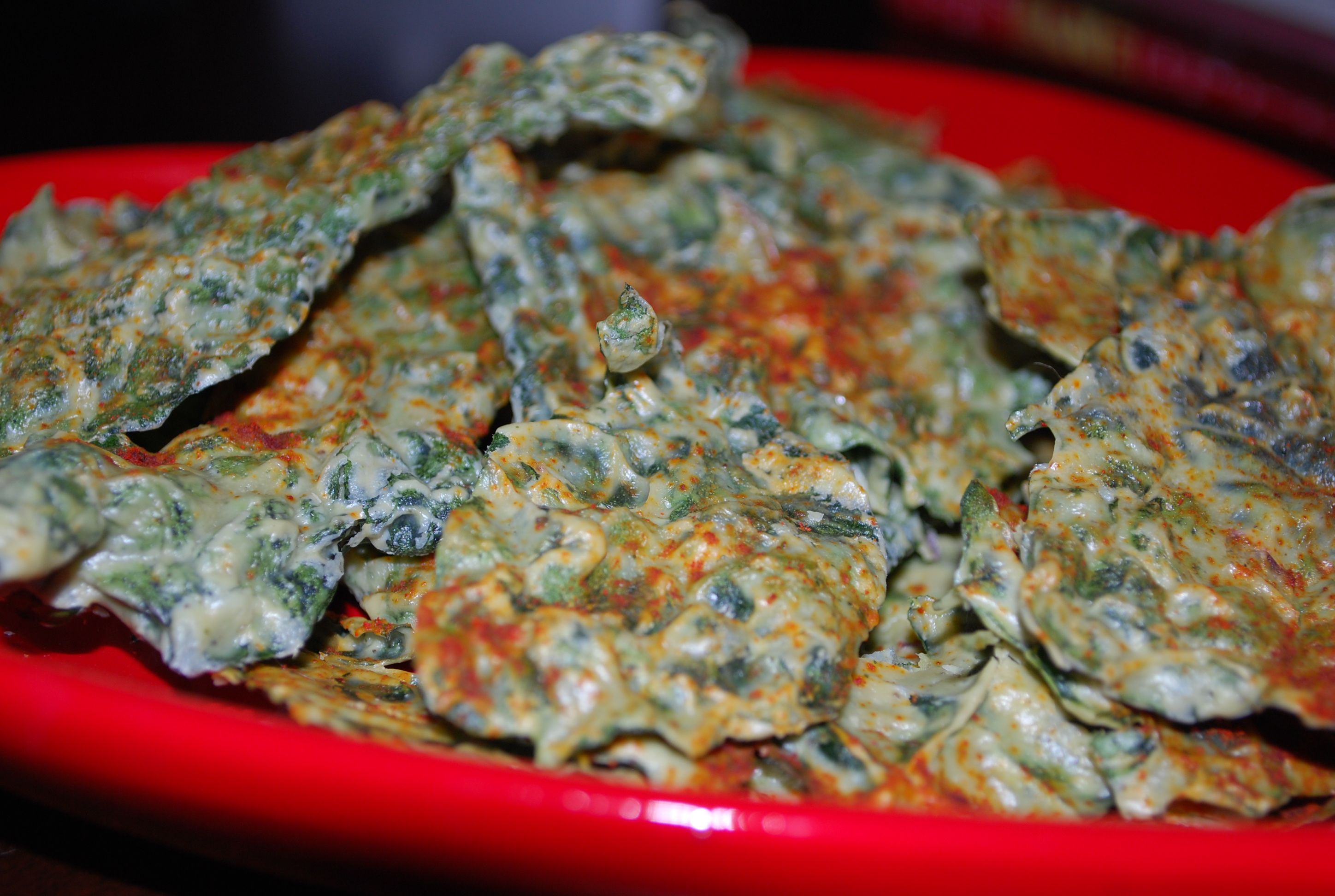** If you use the oven method, spread kale chips on a cookie sheet and bake in the oven until crisp, on the lowest setting with the door slightly ajar.