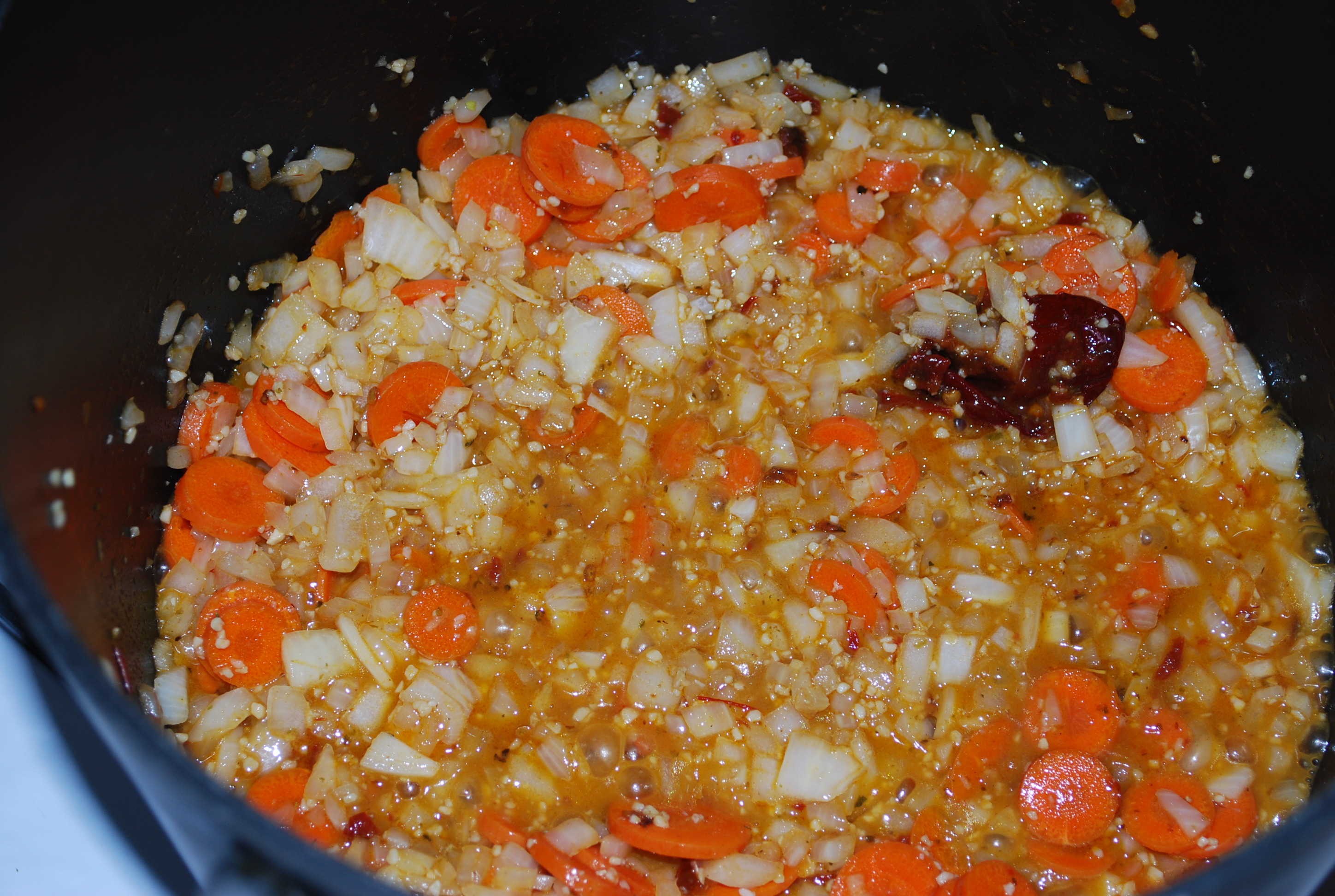 1. Sauté the dried spices, onions, carrot and garlic along with the garlic salt. If you are using canned beans then by all means use less garlic salt