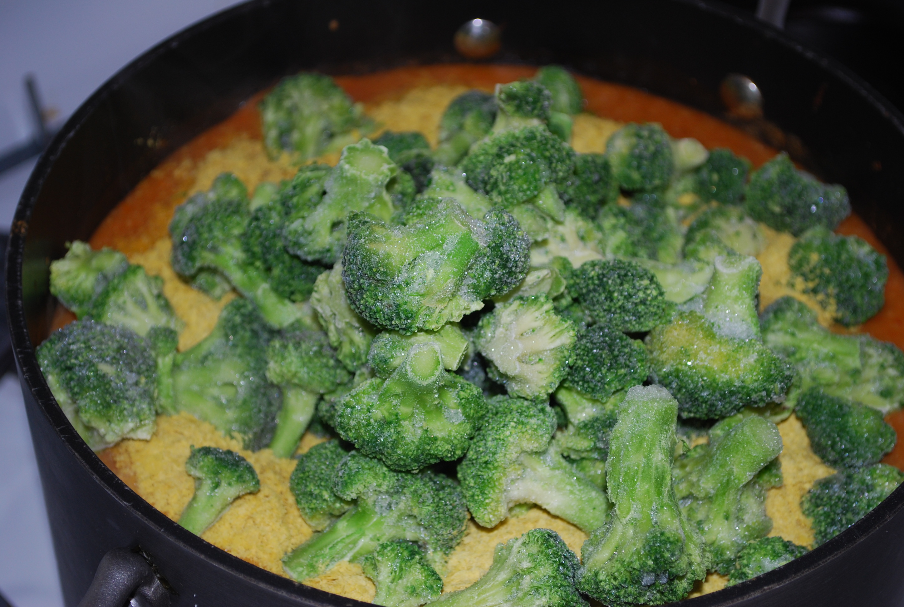 4. Stir in the broccoli, yeast and vinegar. Cover and let soup sit for 10 minutes. Blend again
