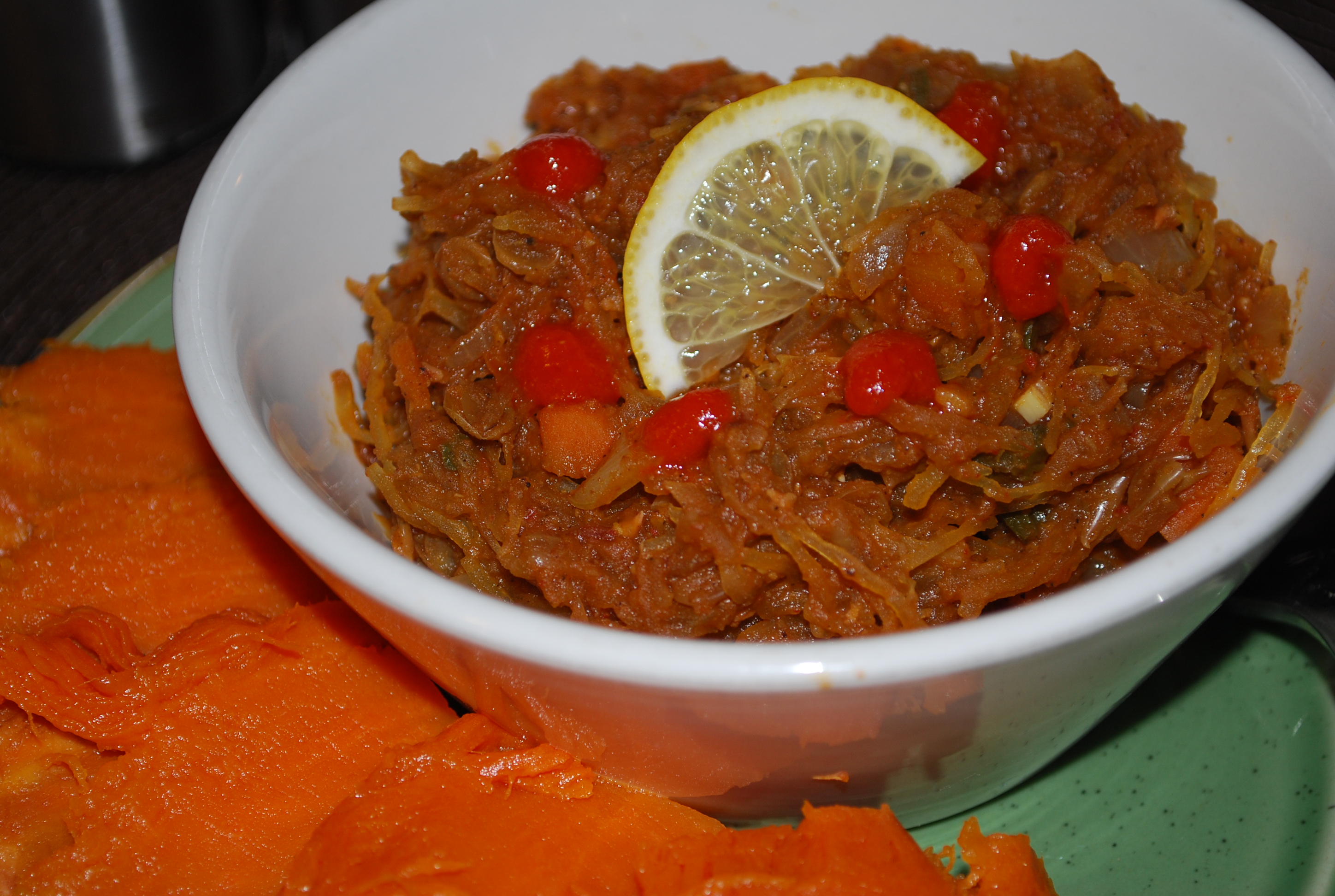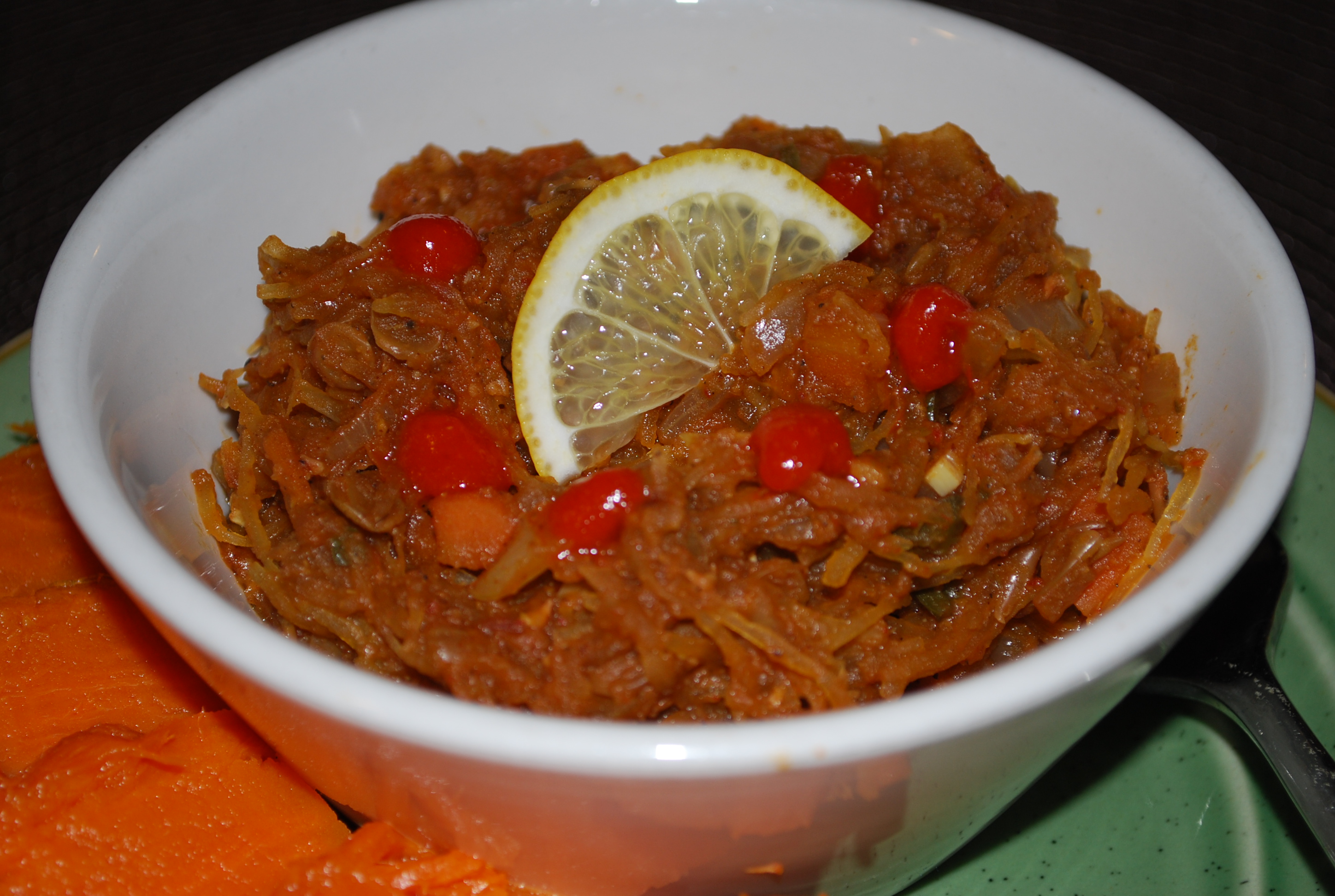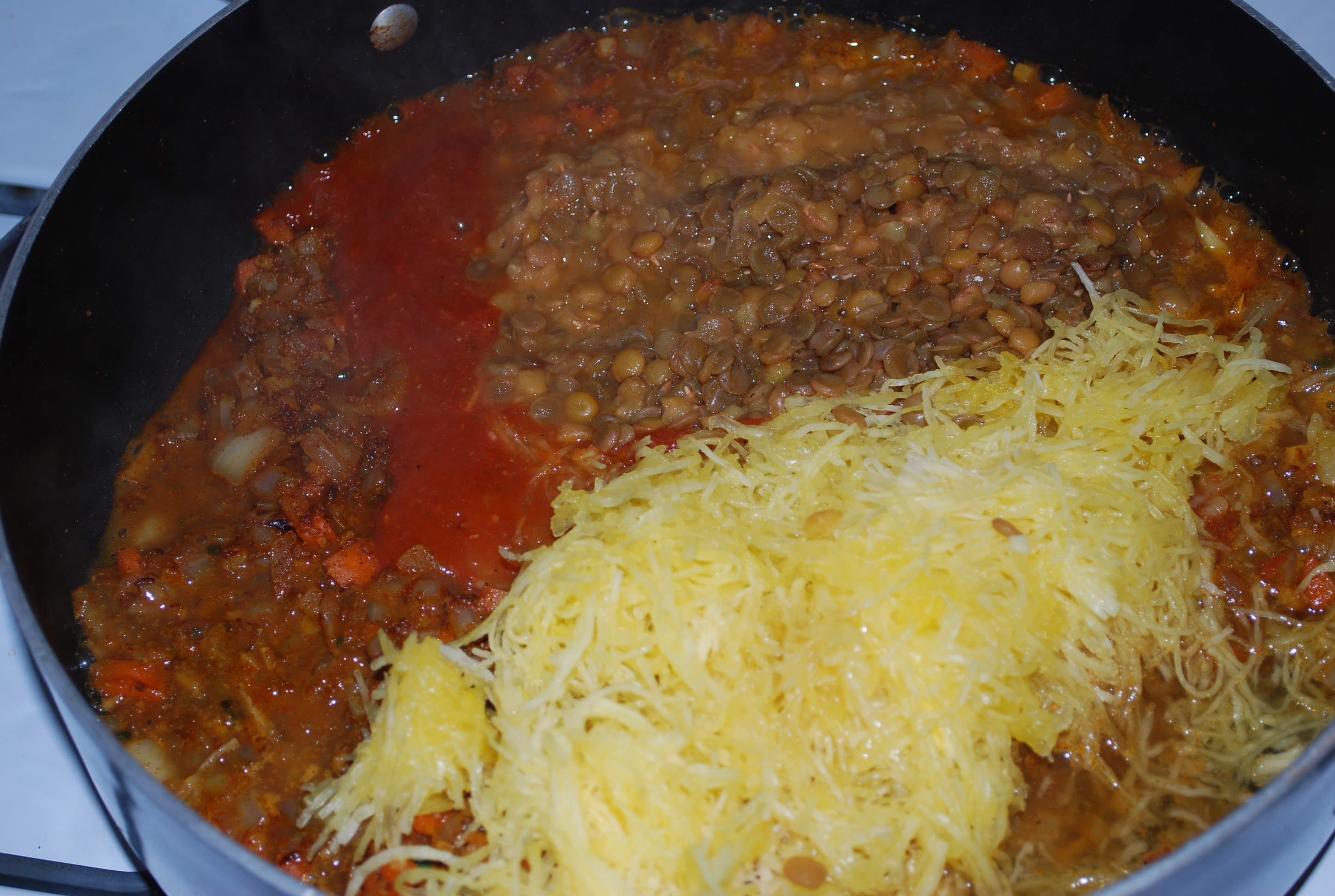 - 2 cups cooked spaghetti squash (I used the boil method – drop whole squash into boiling water and cook for 20-30 minutes or until skin is easily pierced with a fork)