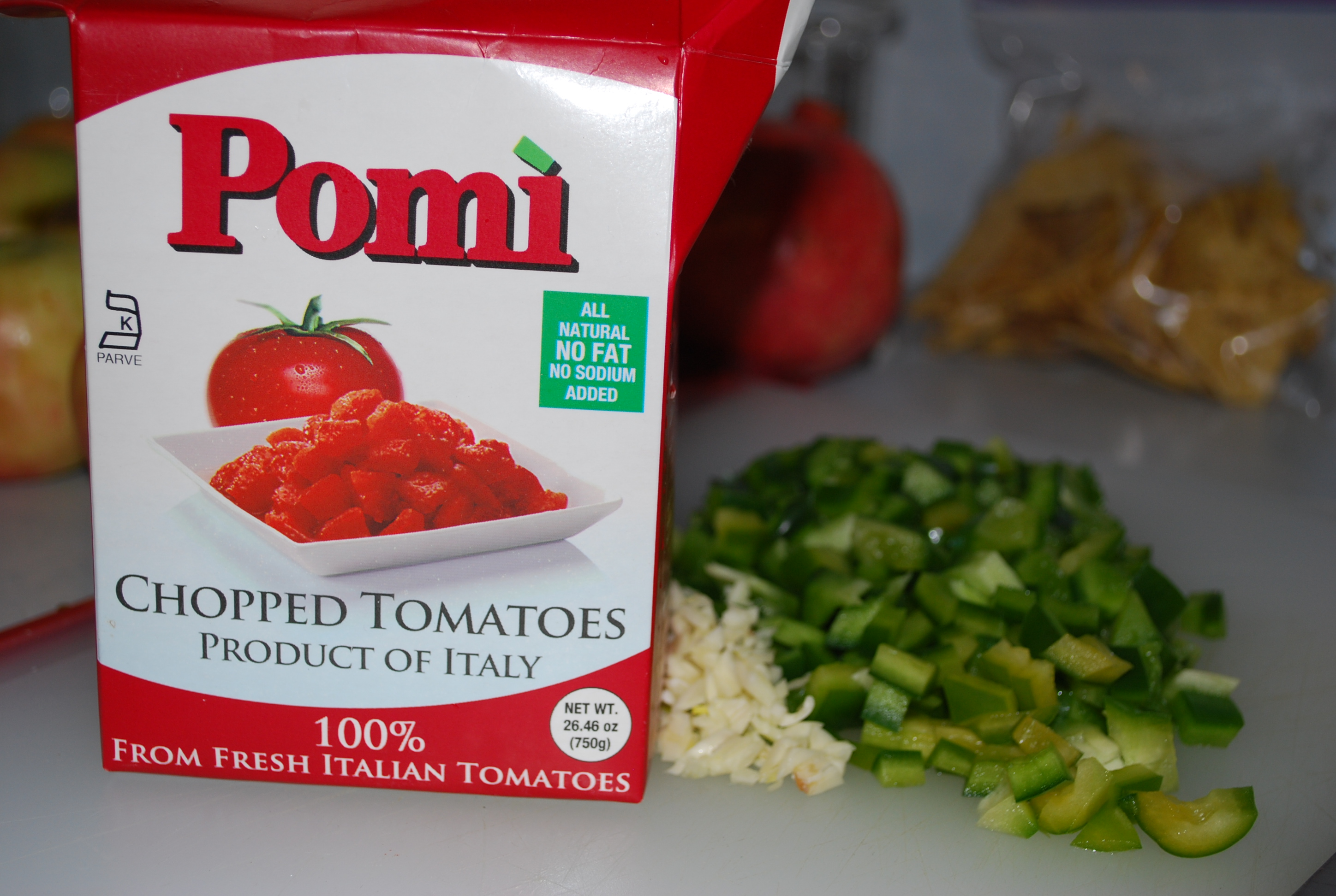 I omitted the oil and I used no-salt added, tetra-packed tomatoes since we are working towards lowering our salt tolerance and eliminating our added oil consumption.