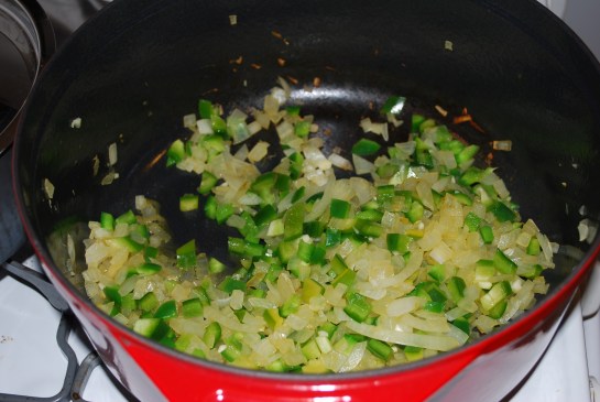 Saute onions, green peppers and garlic