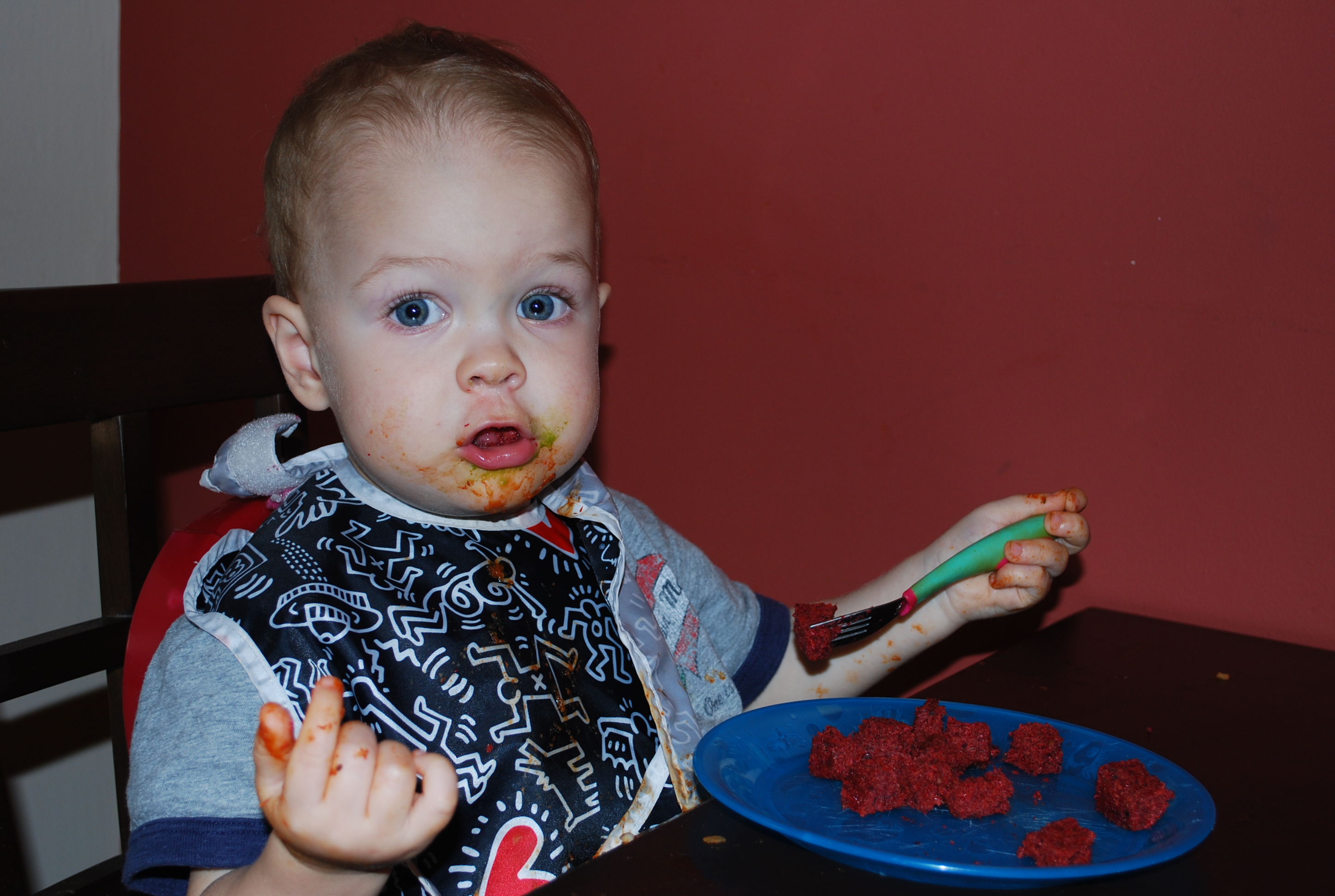 When you use leftover pulp containing beets it comes out a beautiful red velvet color! You can’t even tell there are veggies in this, everyone will be fooled AND you won’t waste your pulp!! Sorry about the bad pics but you know the story! 😉