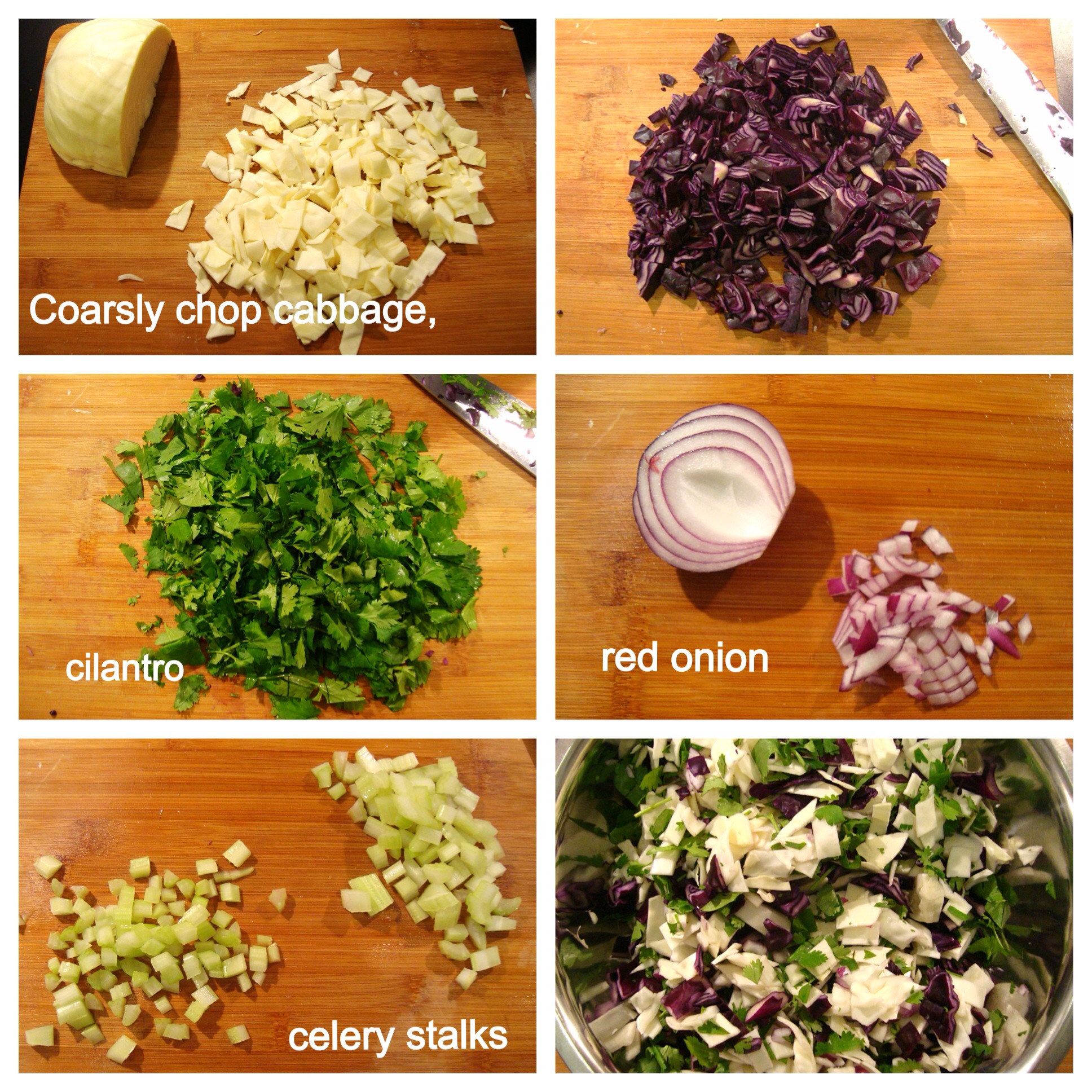 – Half a head of red cabbage, coarsely chopped or shredded in your food processor.