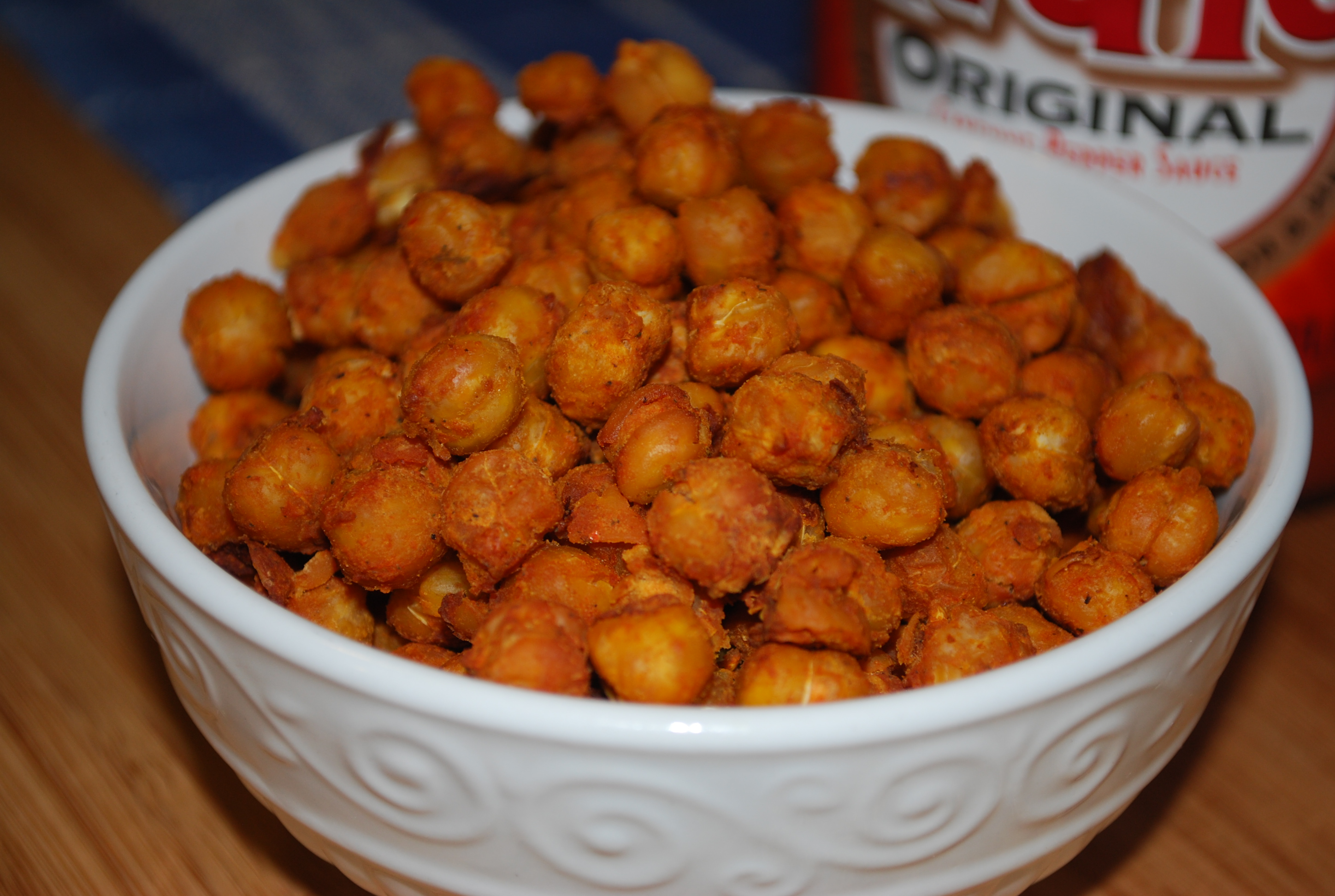 I’ve been so busy that I keep forgetting to eat and I find myself starving at night after the kids go to bed. Since that’s my only time to get things done I look for things I can eat in a hurry. I had a craving for something buffalo’ish (minus the chicken wing part) so I made up these roasted chickpea snacks the other night. They turned out REALLY GOOD!!! Our toddler enjoyed them too even though they do have a little kick to them!
