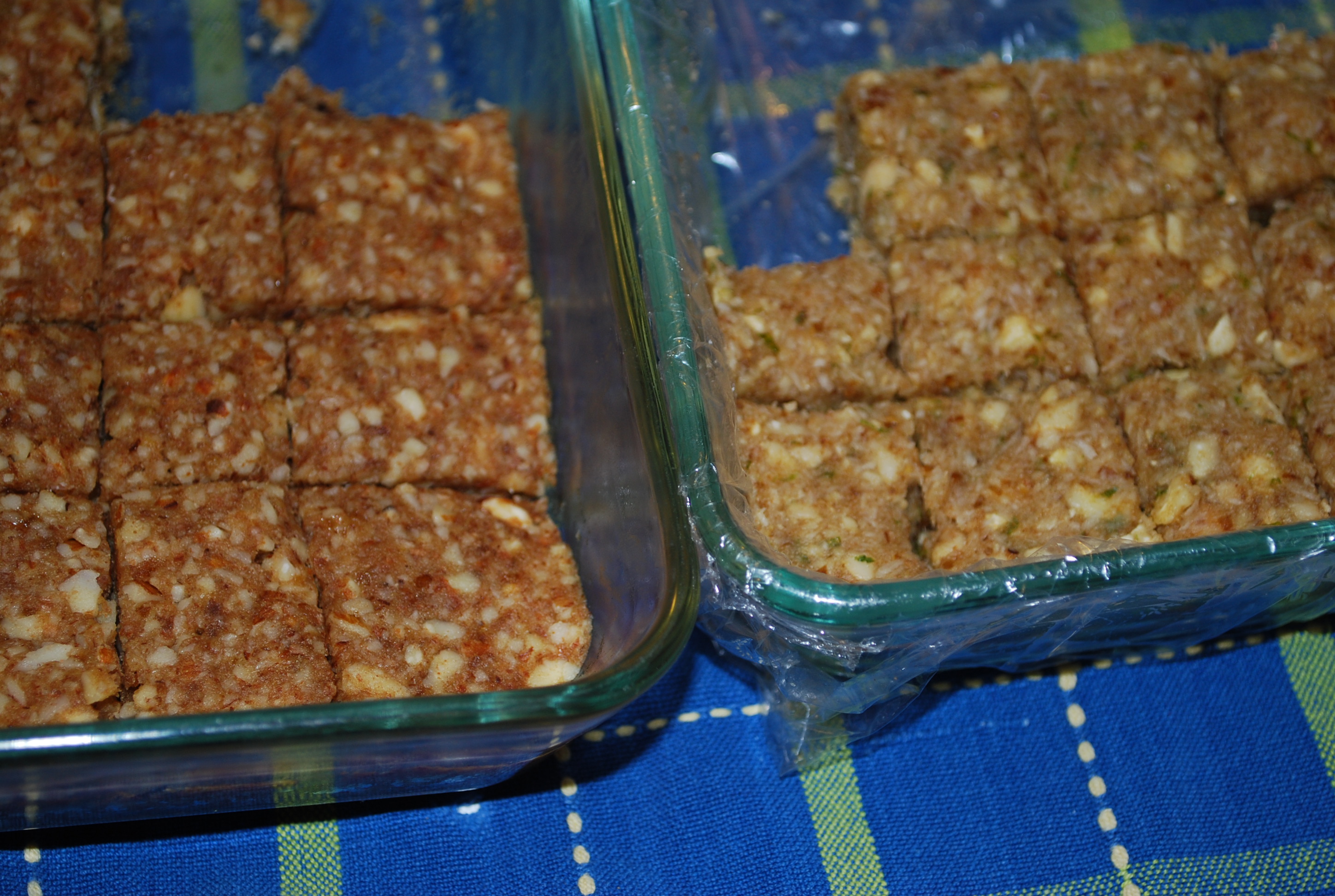 Next you can spread the mixture out onto a plate covered in cling wrap. Using your hands mold the mixture into individual bars. Wrap each separately in plastic wrap or in small ziplocks. It is a good idea to refrigerate the bars after making to maintain freshness and let the form set (try to let them set in the fridge for 20 minutes before you eat one).