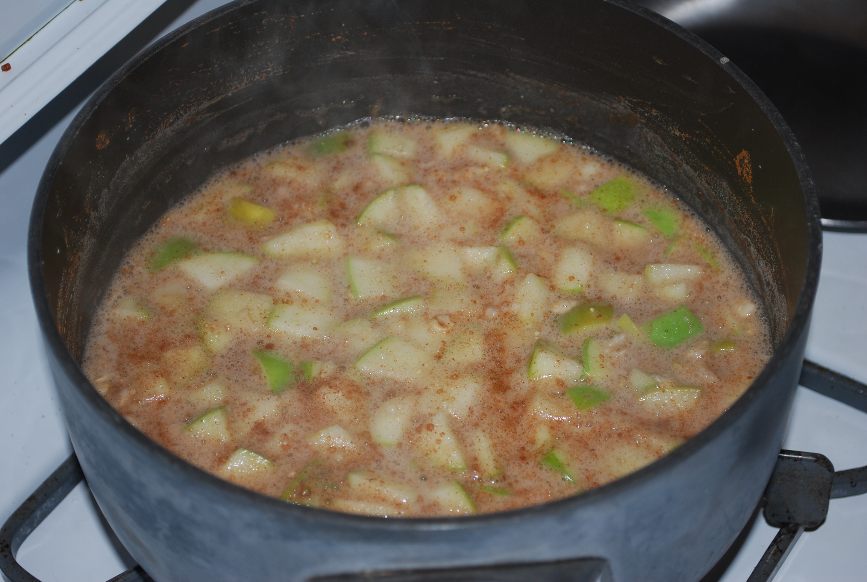 - Place in saucepan and cover. Cook over medium heat for 30 minutes or so. Stir often.
