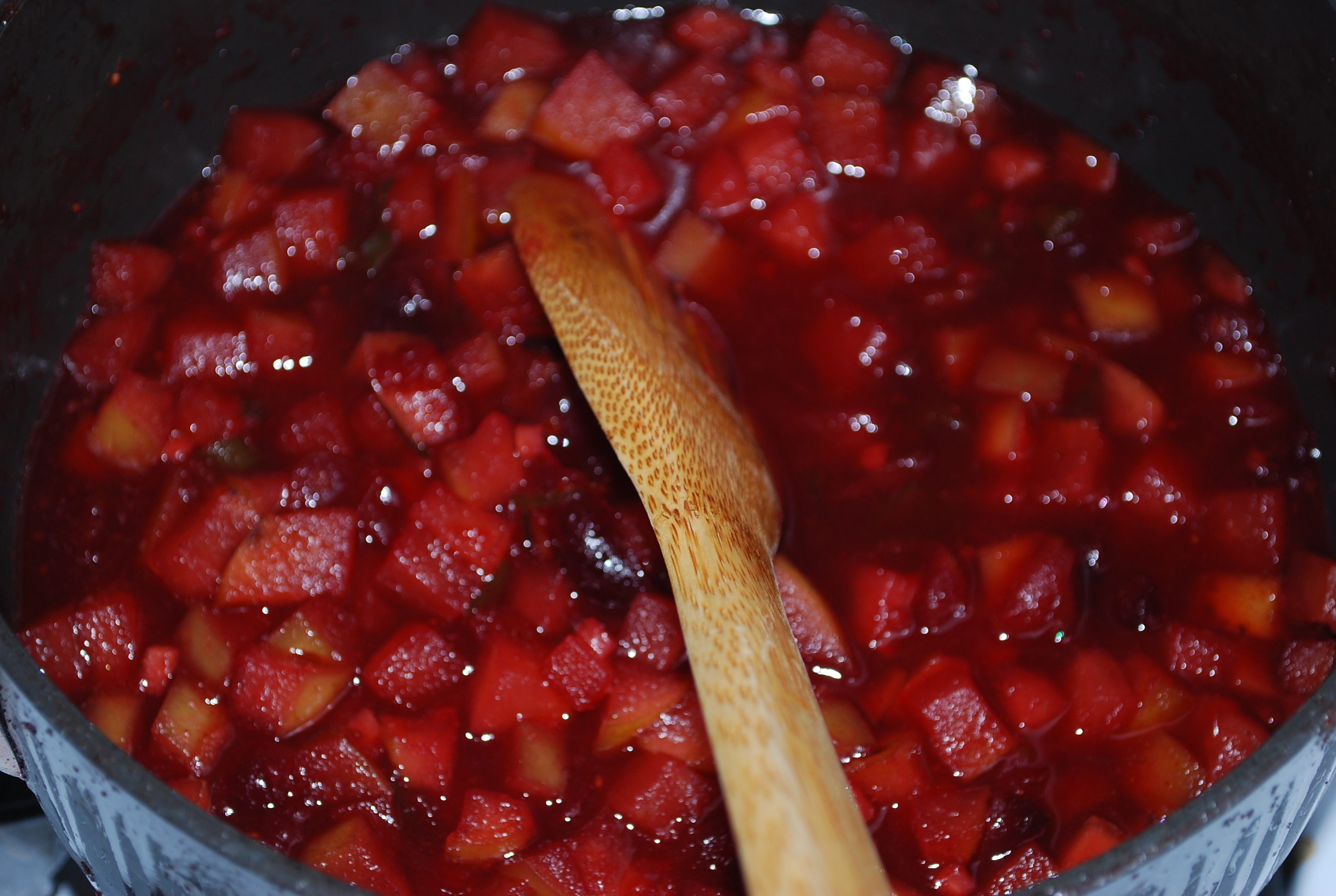 Just in time for your holiday meal! This cranberry chutney is really good and would be an excellent addition to any holiday dish – any dish for that matter! This recipe was written to go with seitan. We ordered Indian food last night and added it to that, it was delish! I don’t make things like this often so this was a real treat! (Trying to reduce the amount of sugar I use in my recipes.) This freezes well too.