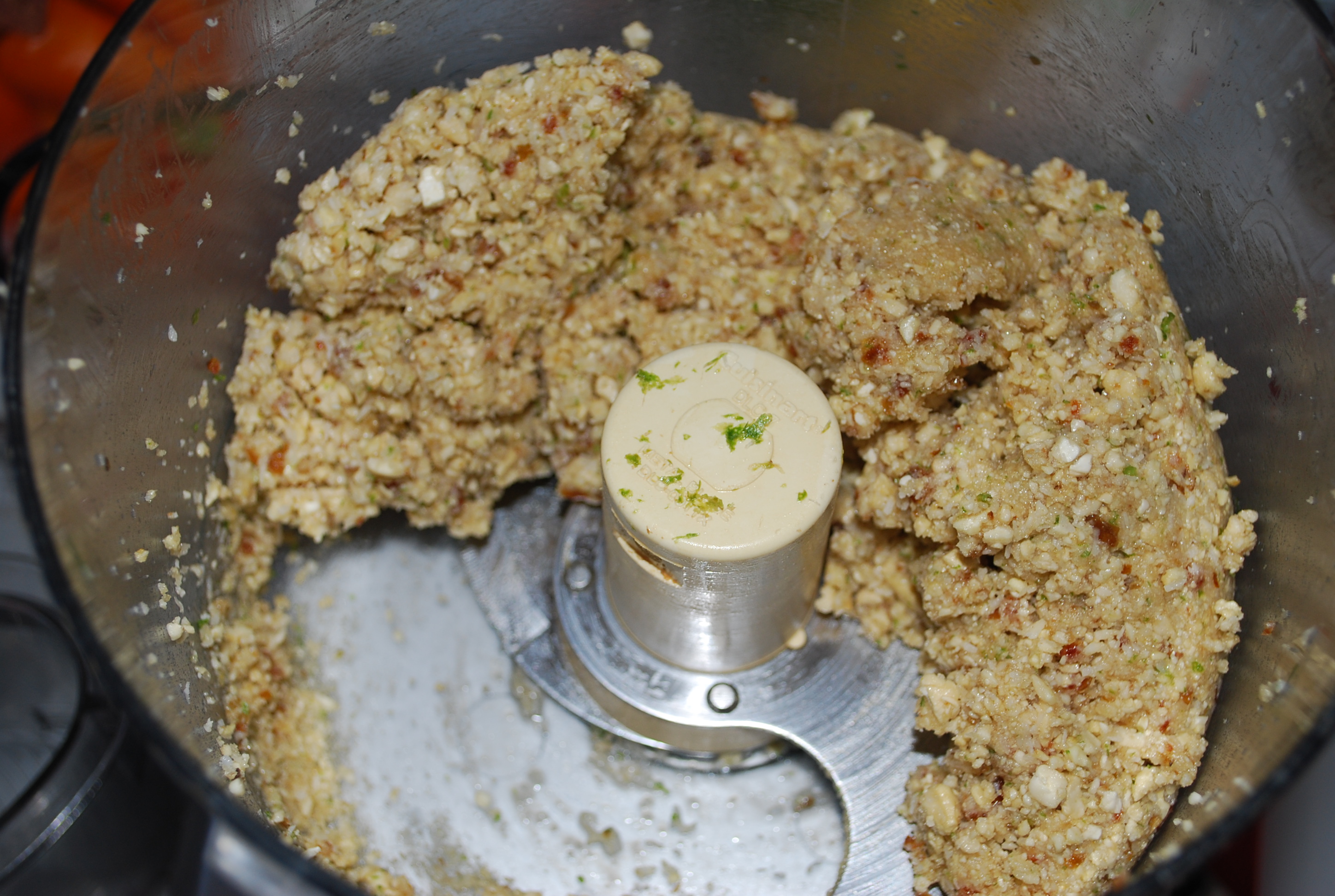 - Place the crust ingredients in your food processor and blend until dough-like.
