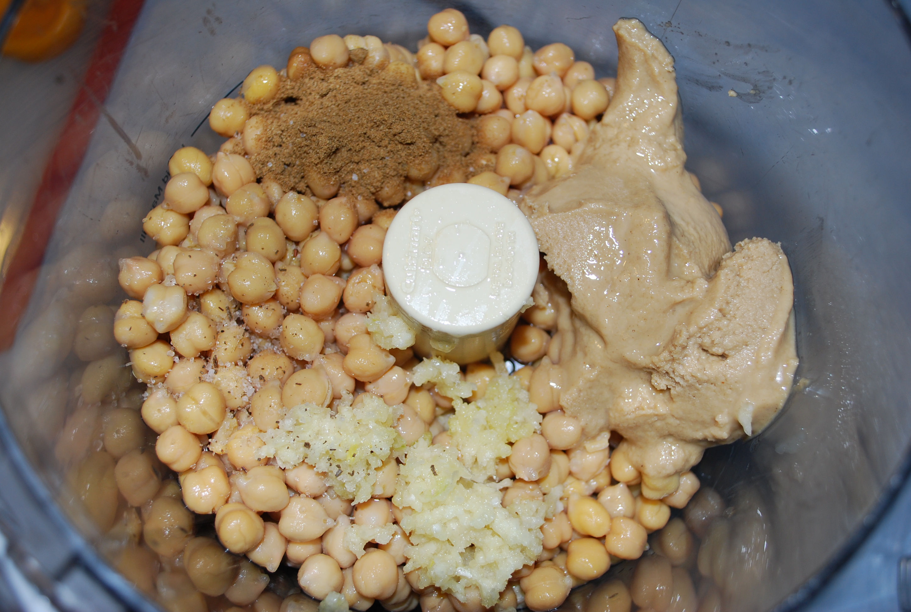 Place ingredients in food processor, add water or bean liquid while its running until you get the consistency you like. Scrape sides, run again.
