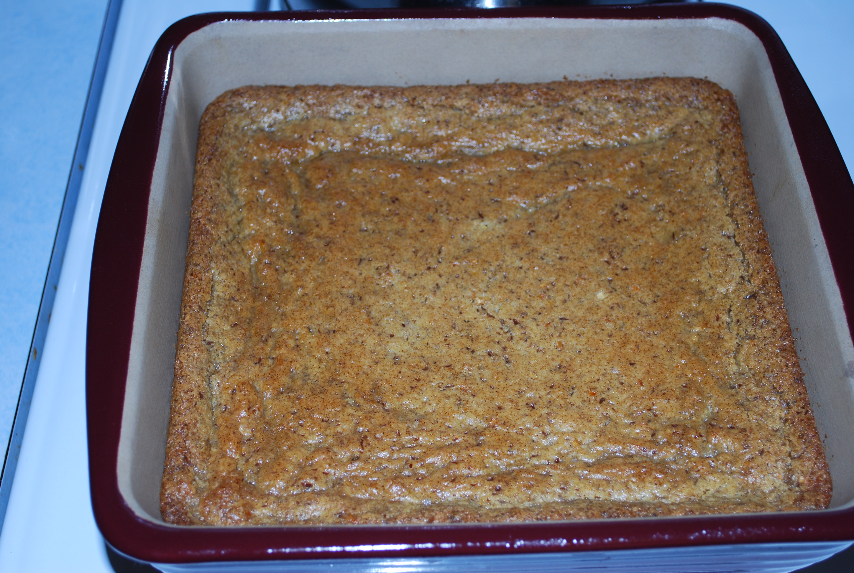 Press cake mixture into a pan – I used a 8″ x 8″ pan but you could use a pie pan