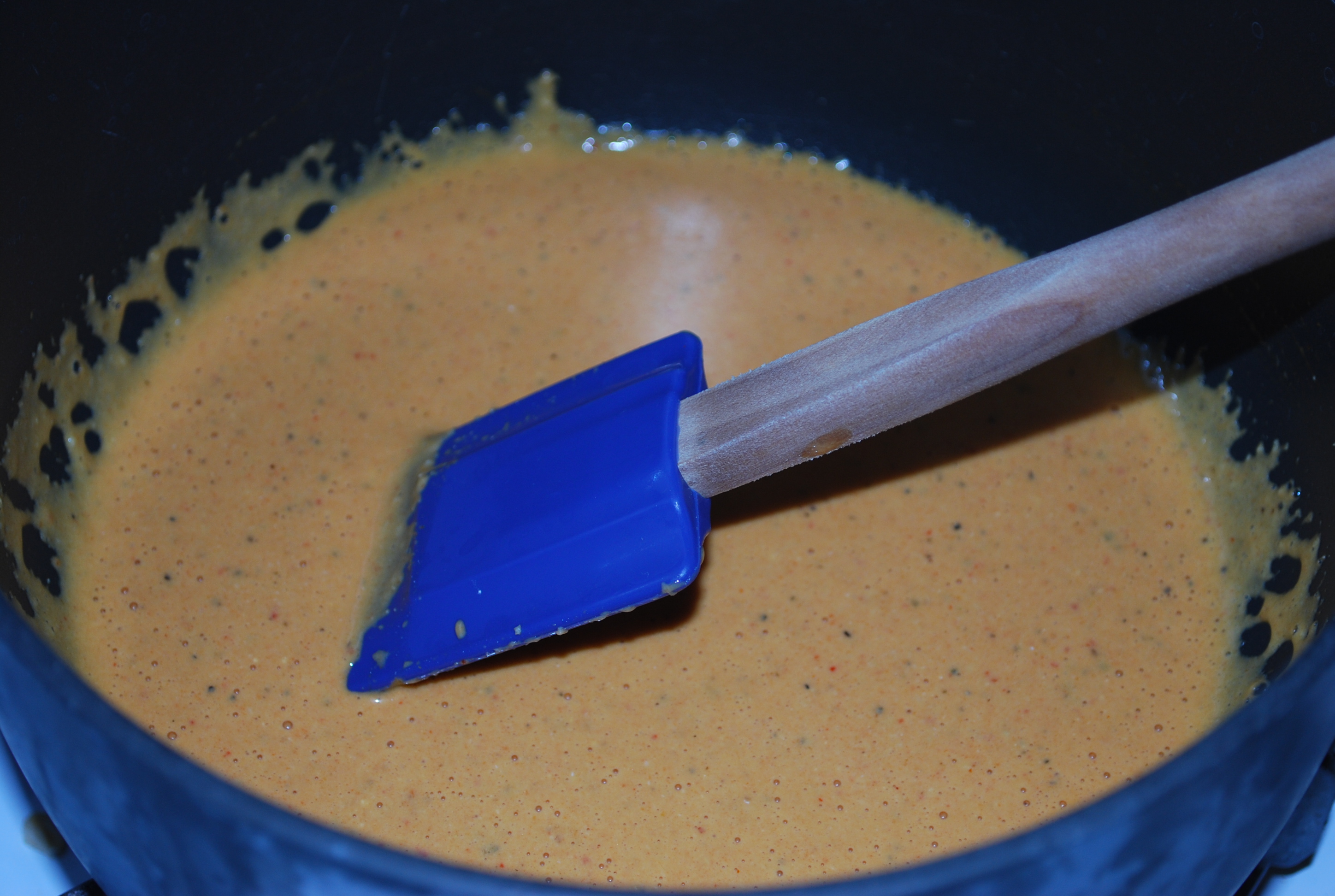 Combine all ingredients in a food processor and process until smooth and creamy. Transfer to a saucepan and cook over medium heat, stirring occassionally and allowing the cheese to thicken.