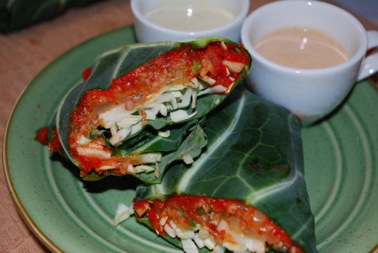 I bought lavash bread/wraps from Trader Joe’s but as my luck would have it, they were out of the whole wheat ones that day so I decided to do a few on collard wraps to make it a bit healthier. The collard wraps were pretty good but not as good as the lavash bread… figures, right?!