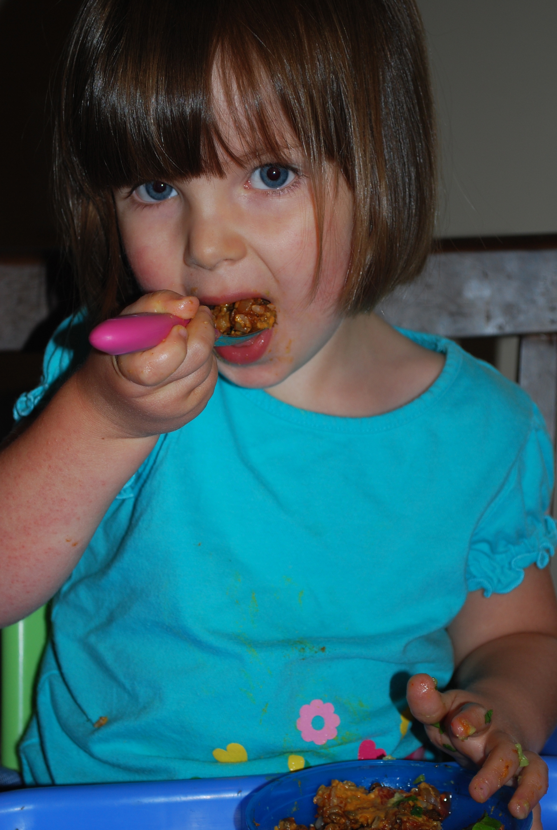 I love anything with curry and lentils! This is quick and easy to make and it makes the house smell awesome! Our toddler enjoyed this; I added a little plain soy yogurt to hers before I tasted it, thinking it would be spicy but it wasn’t.