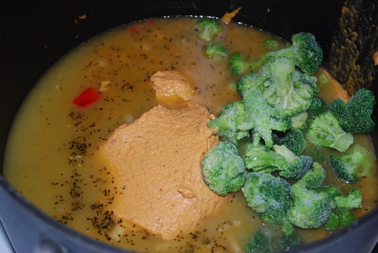 - In a pressure cooker over med hi heat add the oil, cumin, onion, chili, ginger, and curry powder along with a pinch of salt. Sauté for several minutes, then lower the heat down to low and continue cooking for 10 more minutes. (My pressure cooker doesn’t have a low setting so I just sautéed it for about 8 minutes or so)