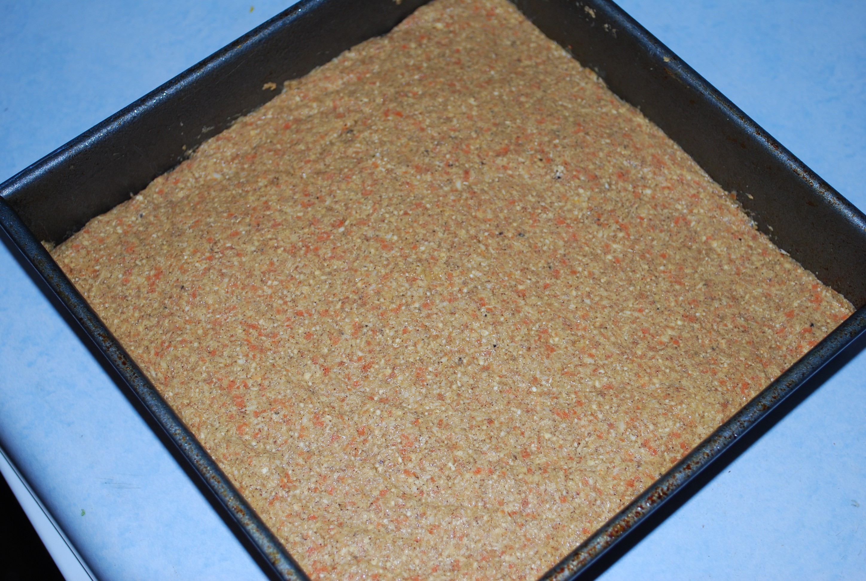 Knead the mixture together, spread “dough” onto plastic wrap on line a glass dish with plastic wrap and press into the dish