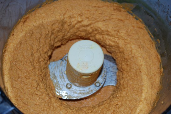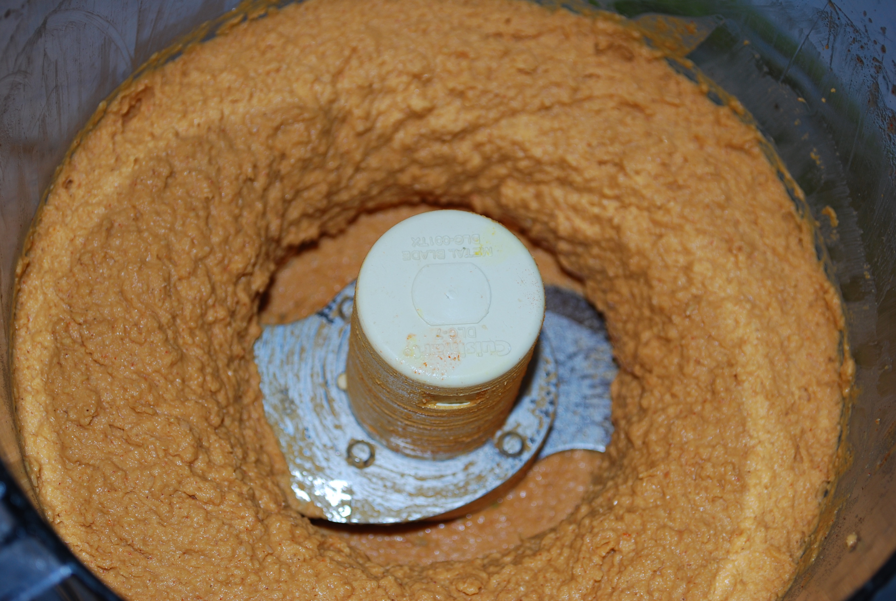 Put the chickpeas, garlic, tahini, lemon juice, paprika, wing sauce, hot sauce, vinegar and 1 1/2 teaspoons salt in a food processor. Puree until smooth and creamy.