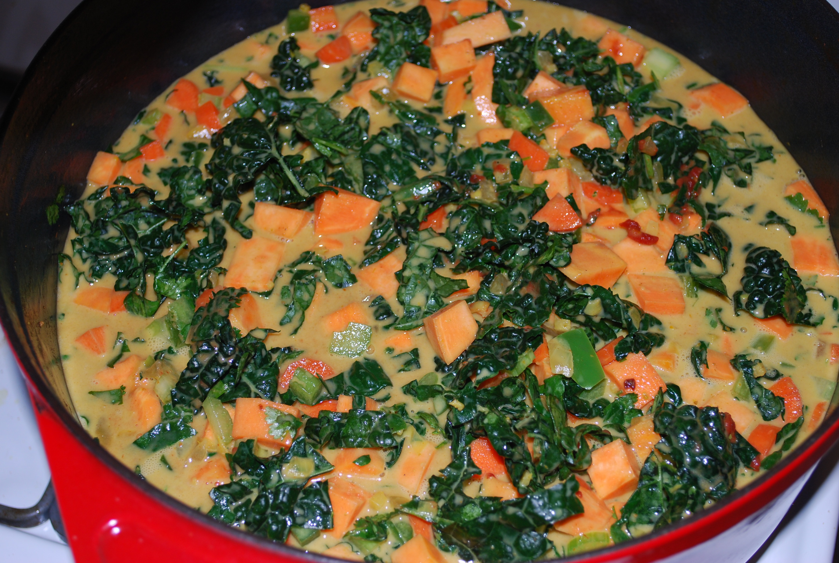 1. Water/broth sauté sweet potatoes, onions, garlic and red pepper together until soft. I covered my pan with a lid, I feel like it helps the sweet potato cook faster.