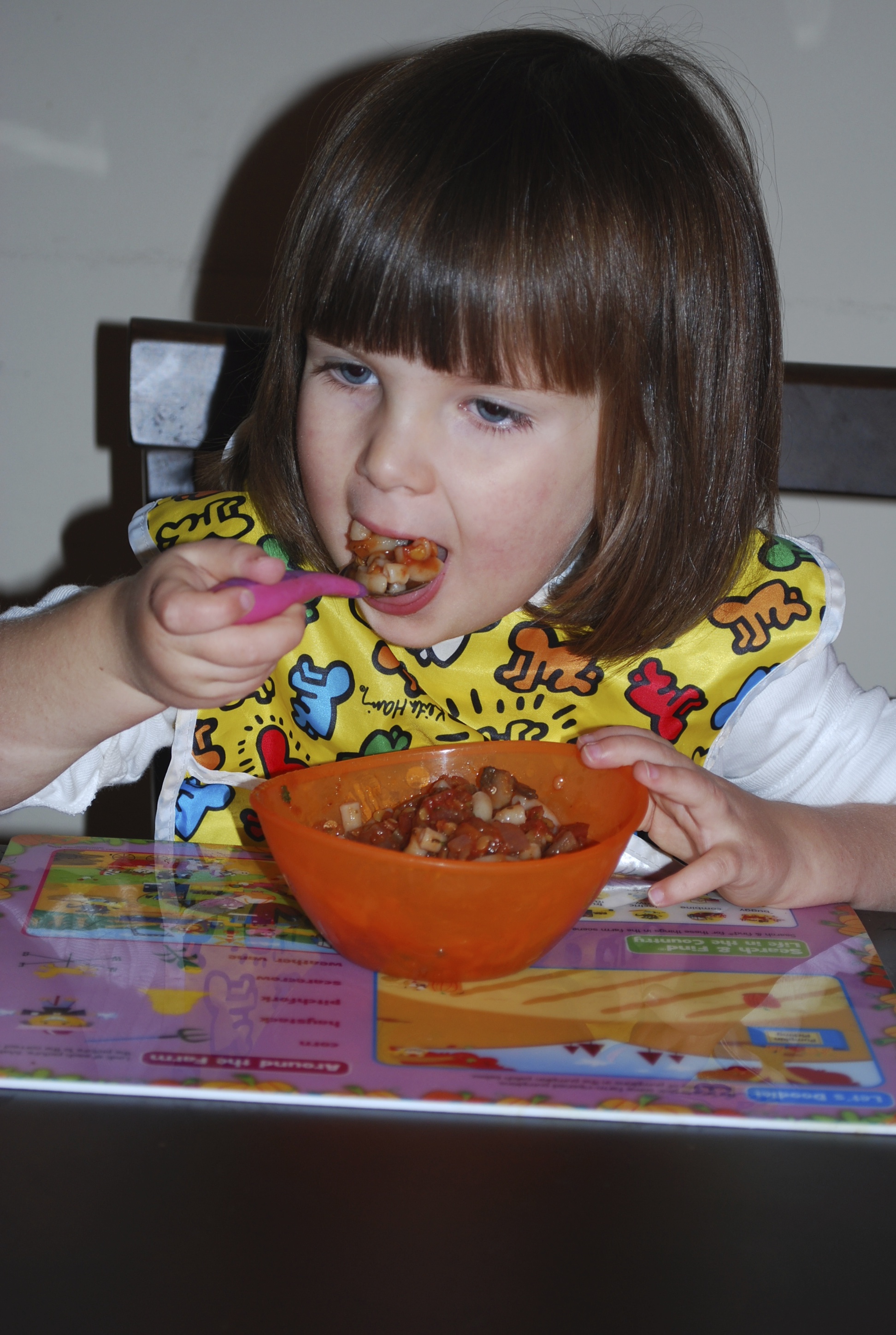I made this in a hurry but it turned out delicious! Our 18-month old was screaming at the top of his lungs in his high chair most of the time, flinging bananas across the kitchen. Once his portion cooled off he started eating the screaming stopped. Phew!!